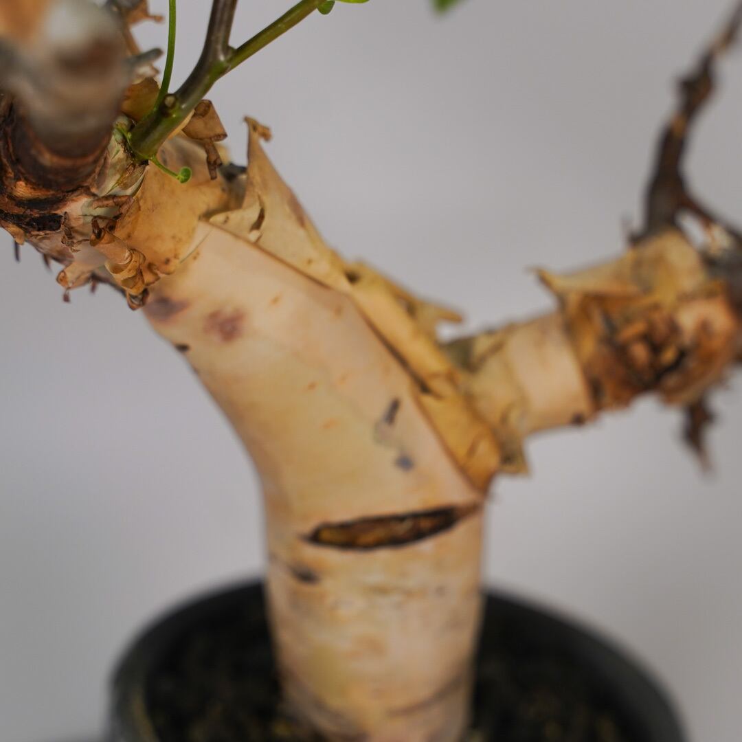 白い幹と、先端から伸びる繊細な茶褐色の枝とのコントラストが唯一無二の芸術的な樹形を創り出します。